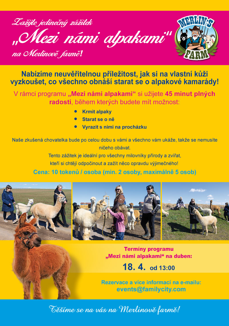 Rezervace a více informací na e-mailu: events@familycity.com. Těšíme se na vás na Merlinově farmě!